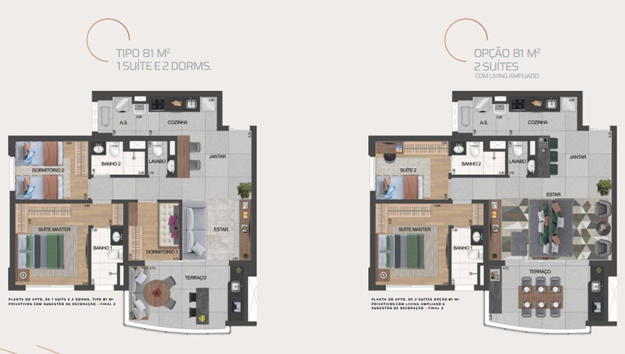 1 e 2 vgs | 1 a 2 suítes