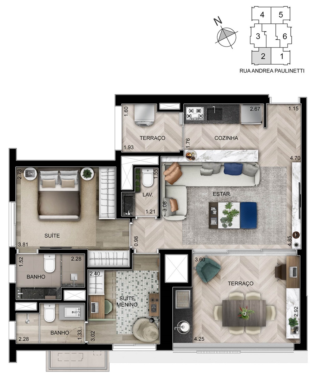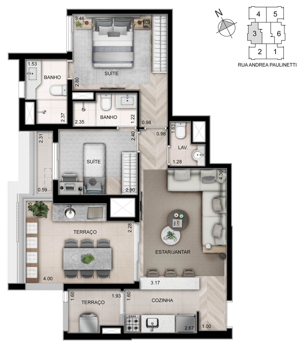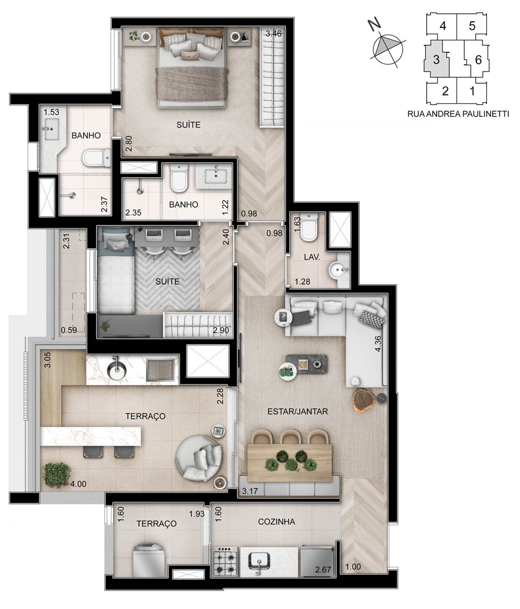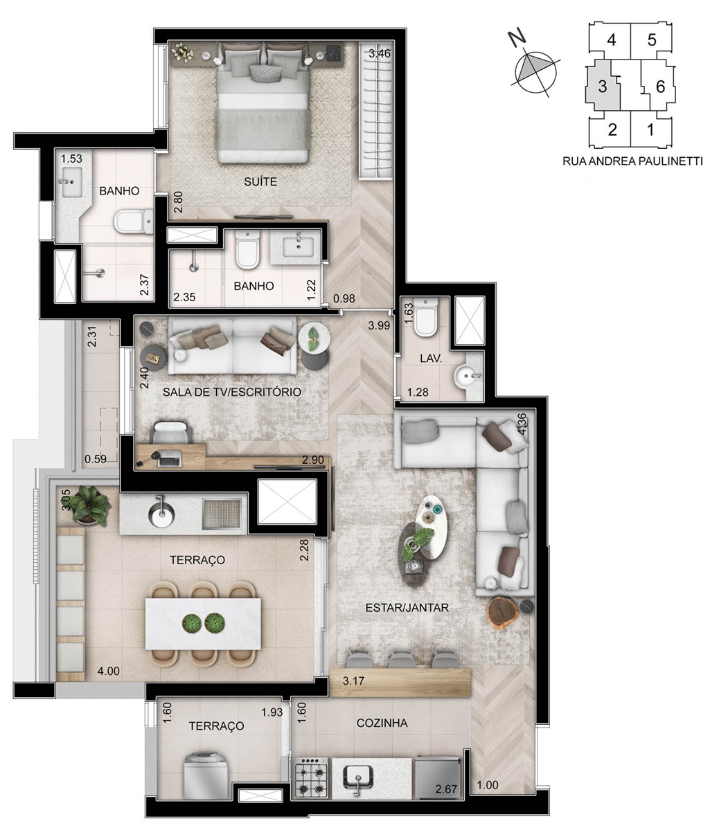 SUGESTÃO DE DECORAÇÃO DO LIVING DOS APARTAMENTOS DE 74 M2