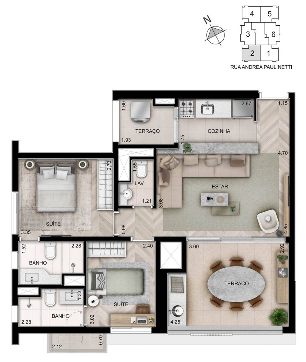 76 M2 - 2 SUÍTES - 1 VAGA