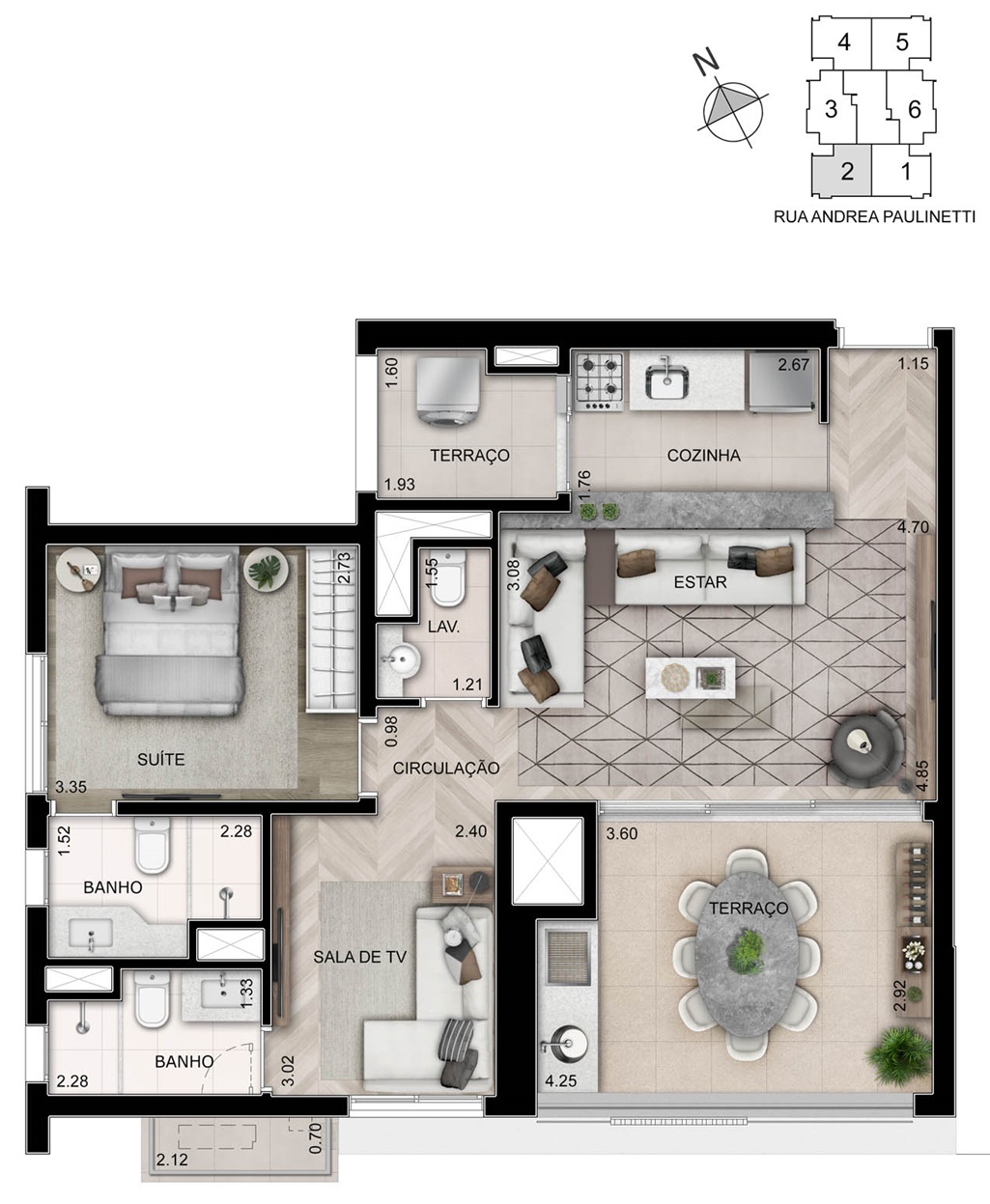 SUGESTÃO DE DECORAÇÃO DO TERRAÇO DOS APARTAMENTOS DE 74 M2