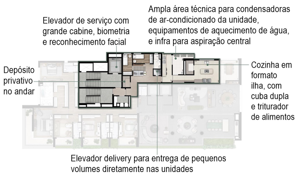 DIFERENCIAIS DA ÁREA DE SERVIÇO DO APARTAMENTO DE 500 M2