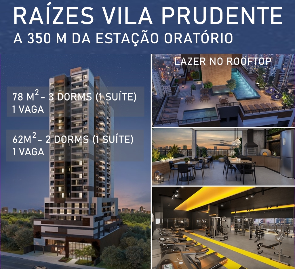 RAÍZES L´AVENIR À 350 M DA ESTAÇÃO VILA PRUDENTE