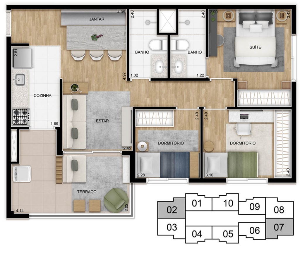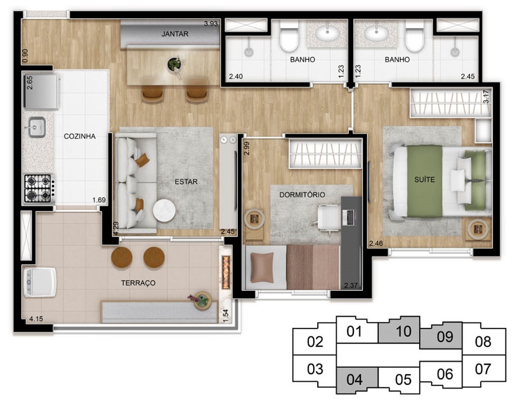 2 DORMITÓRIOS (1 SUÍTE)