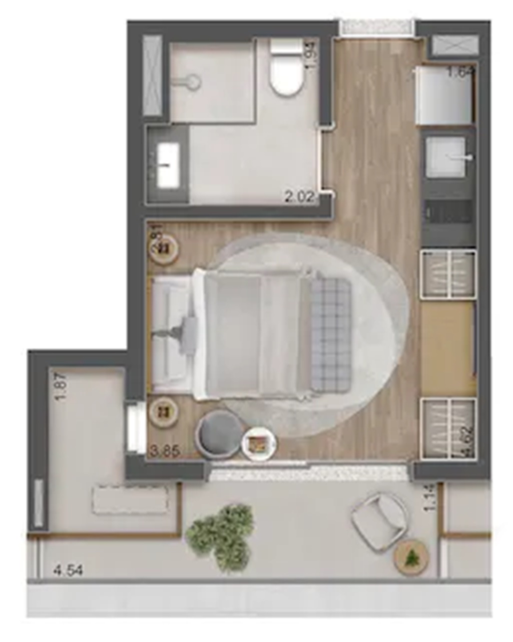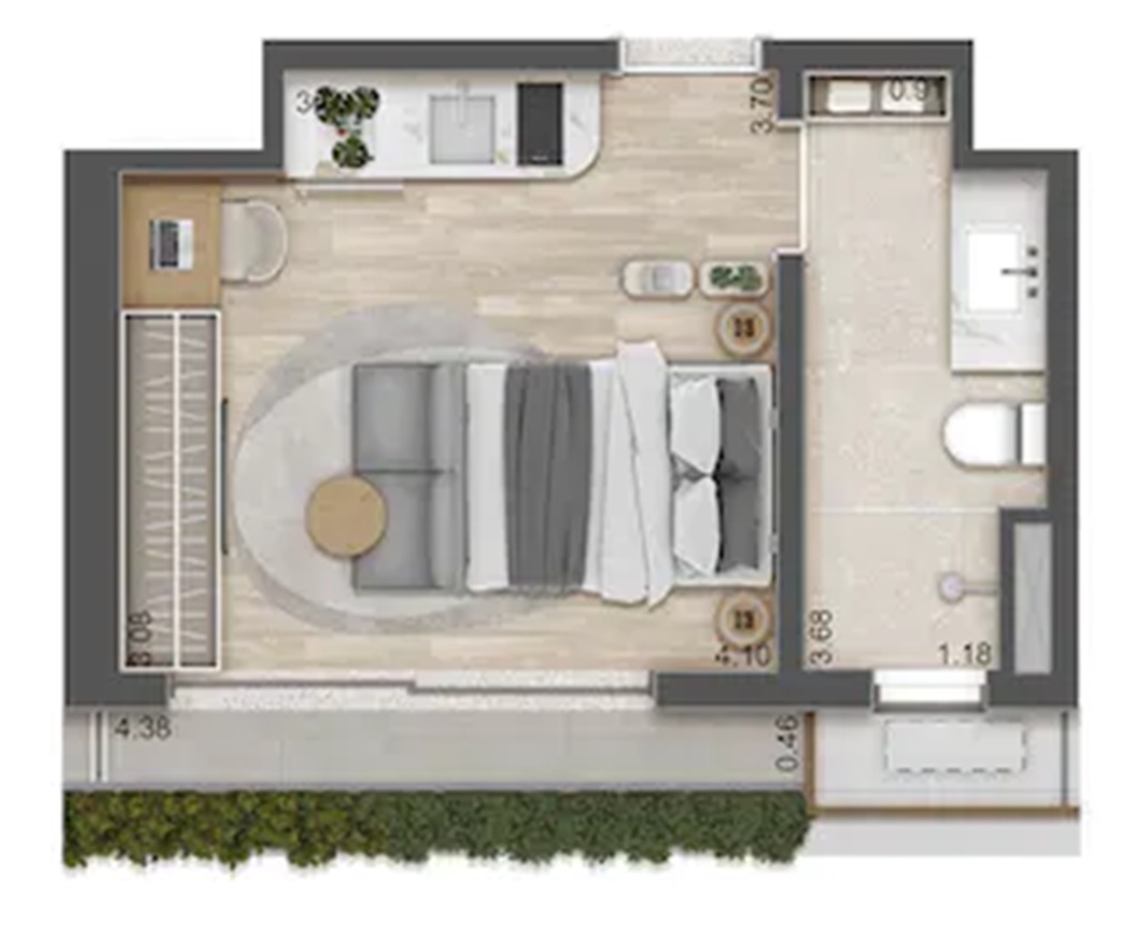 SUGESTÃO DE DECORAÇÃO PARA O STUDIO RESIDENCIAL (LUXURY APARTMENTS) DE 26 M2 FINAL 1