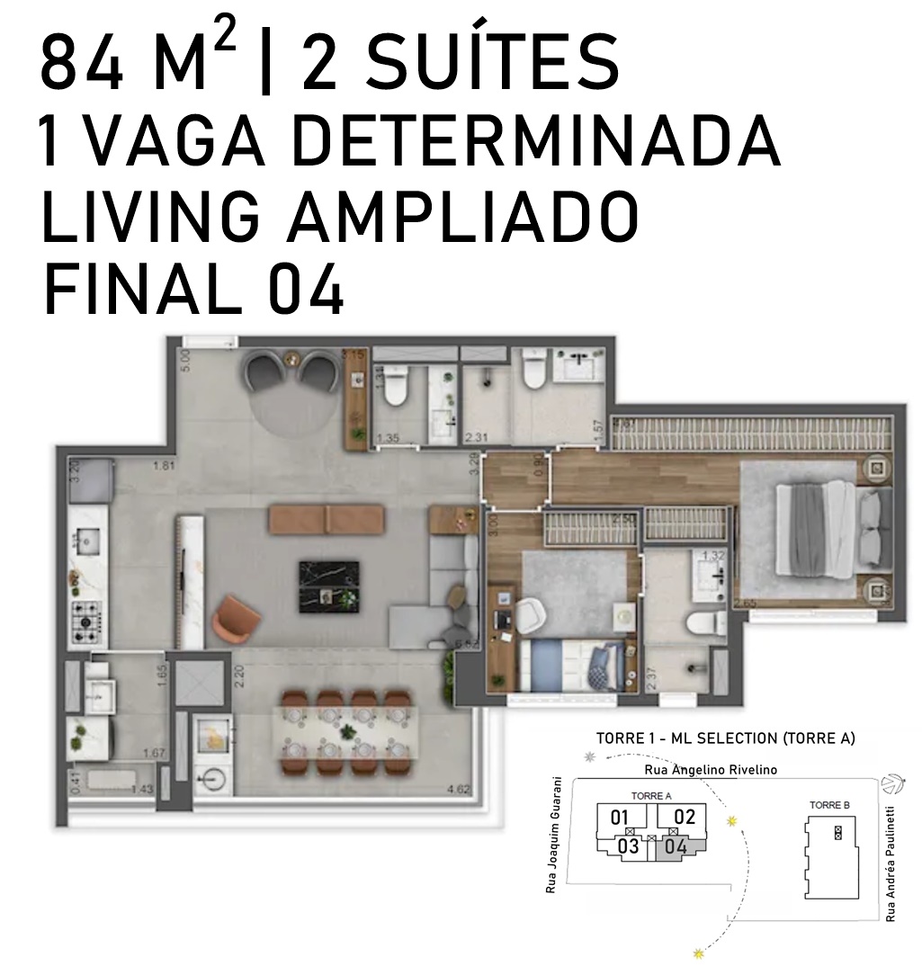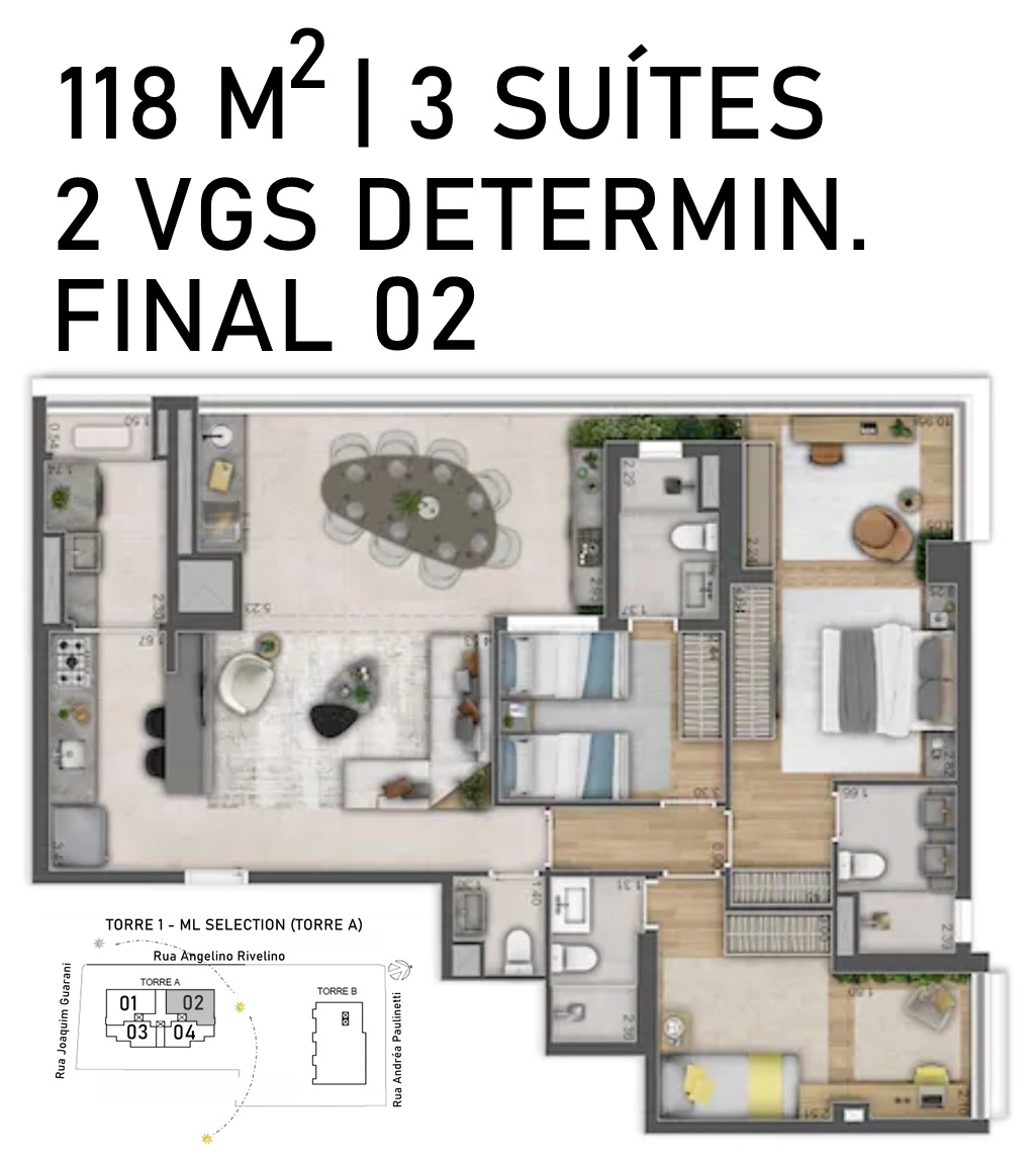 2 E 3 SUÍTES COM VAGAS DETERMINADAS