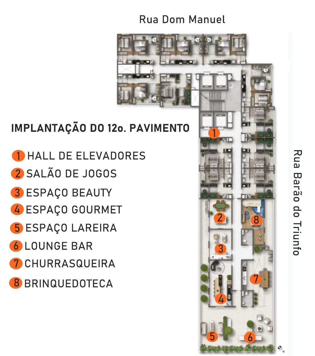 DISTRIBUIÇÃO DAS ÁREAS COMUNS E DE LAZER NO 12o. PAVIMENTO
