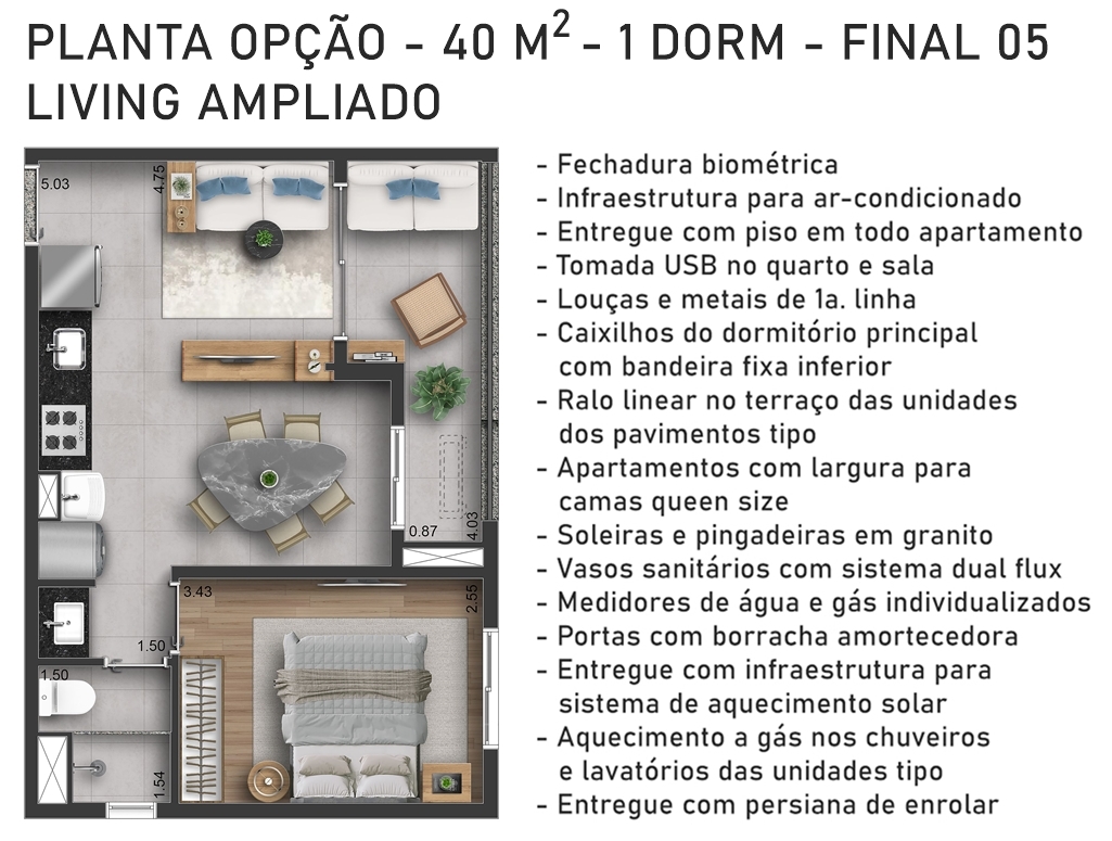 SUGESTÃO DE DECORAÇÃO PARA O LIVING AMPLIADO DO APARTAMENTO OPÇÃO DE 40 M2