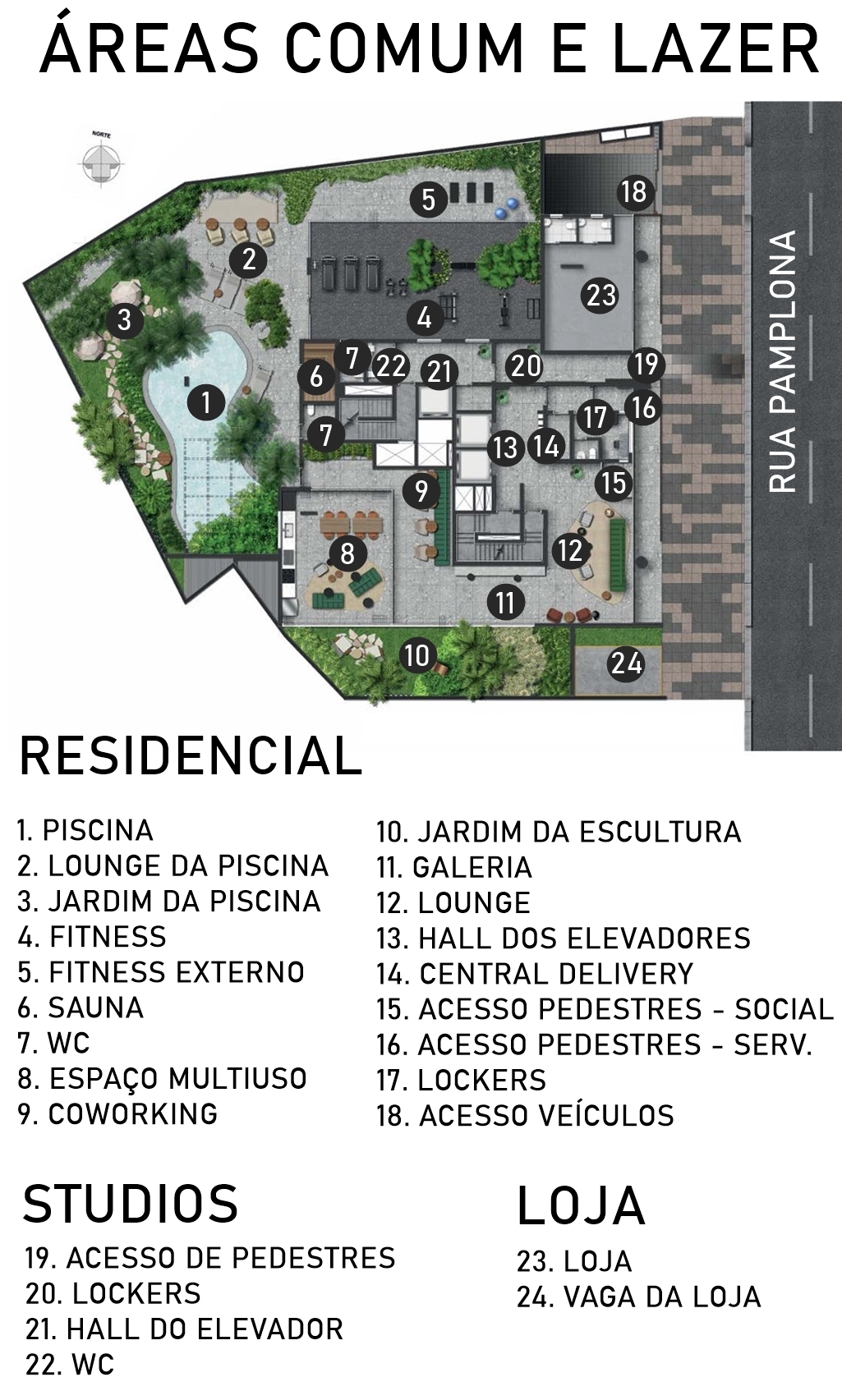 | Piscina coberta | Bicicletário | ||||