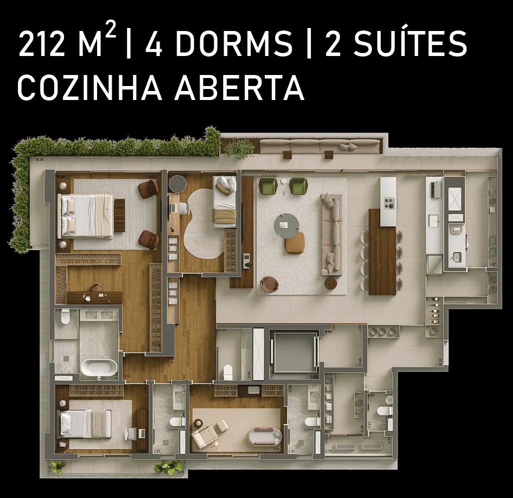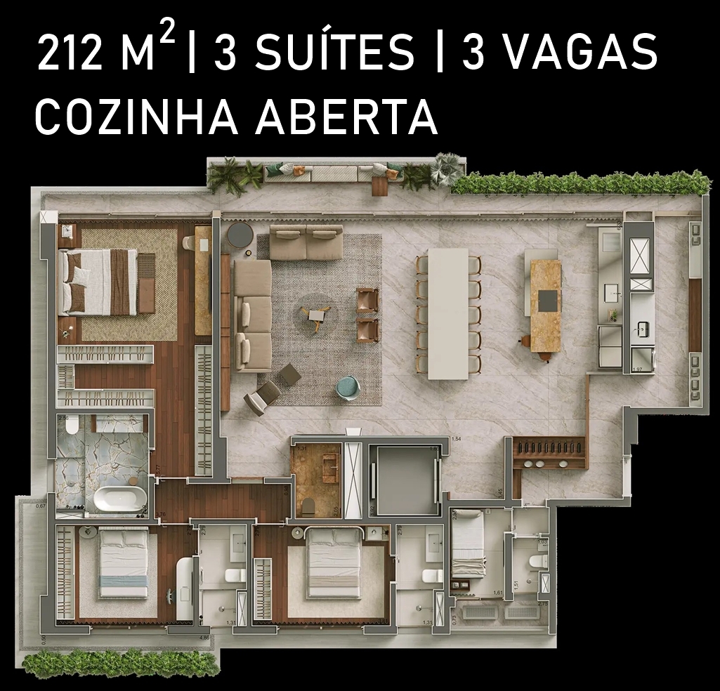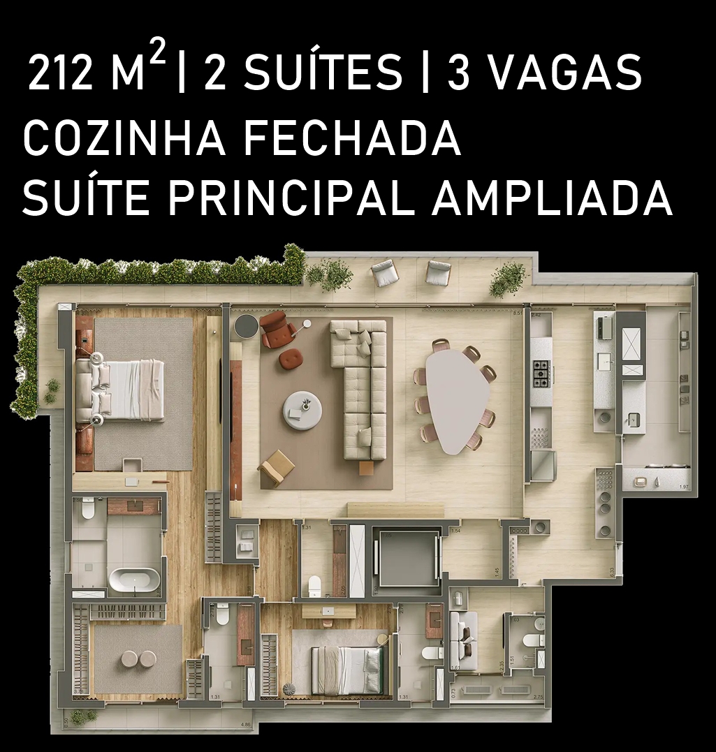 SALA DO APARTAMENTO DE 212 M2, OPÇÃO COZINHA FECHADA, COM SUGESTÃO DE DECORAÇÃO