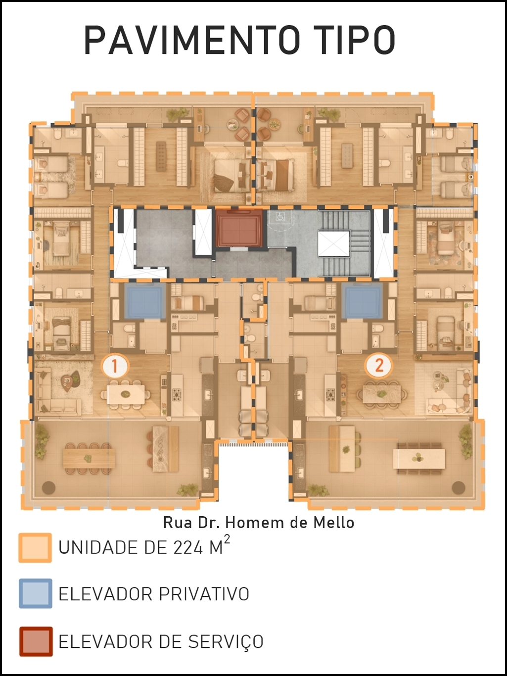 LIVING DO APARTAMENTO DE 224 M2 COM SUGESTÃO DE DECORAÇÃO