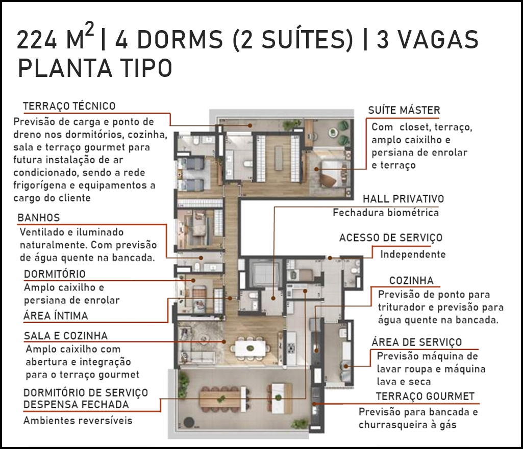 TERRAÇO DO APARTAMENTO DE 224 M2 COM SUGESTÃO DE DECORAÇÃO