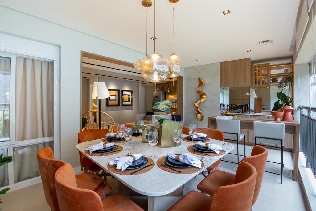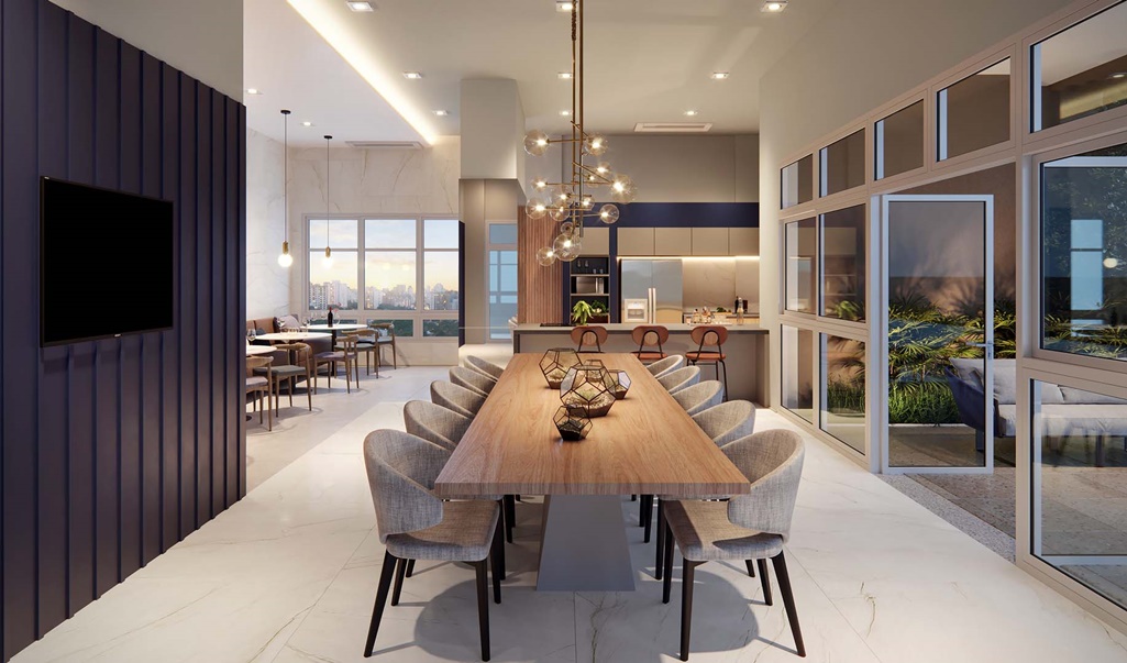 UM ESPAÇO GOURMET COM AMPLAS ACOMODAÇÕES TORNA O AMBIENTE MAIS COMPLETO PARA ATENDER DIFERENTES DEMANDAS