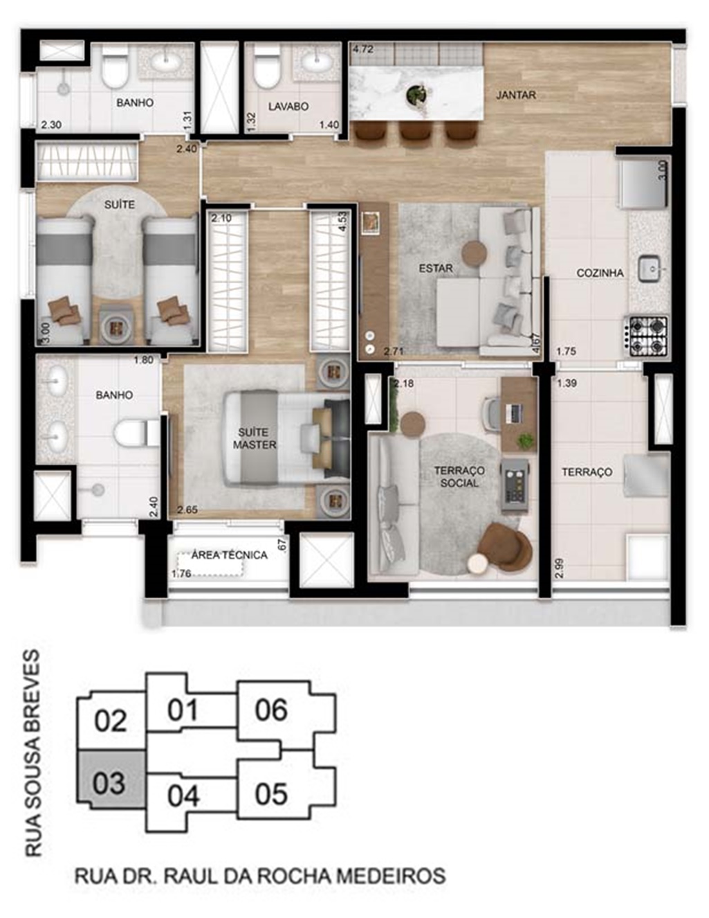 PLANTA TIPO | 76 m2 | 2 SUÍTES