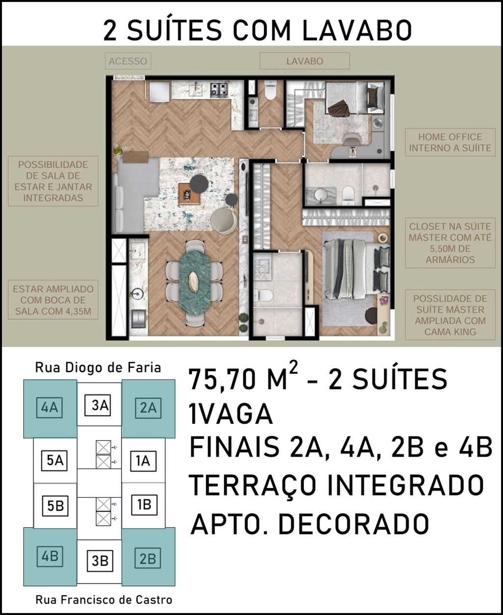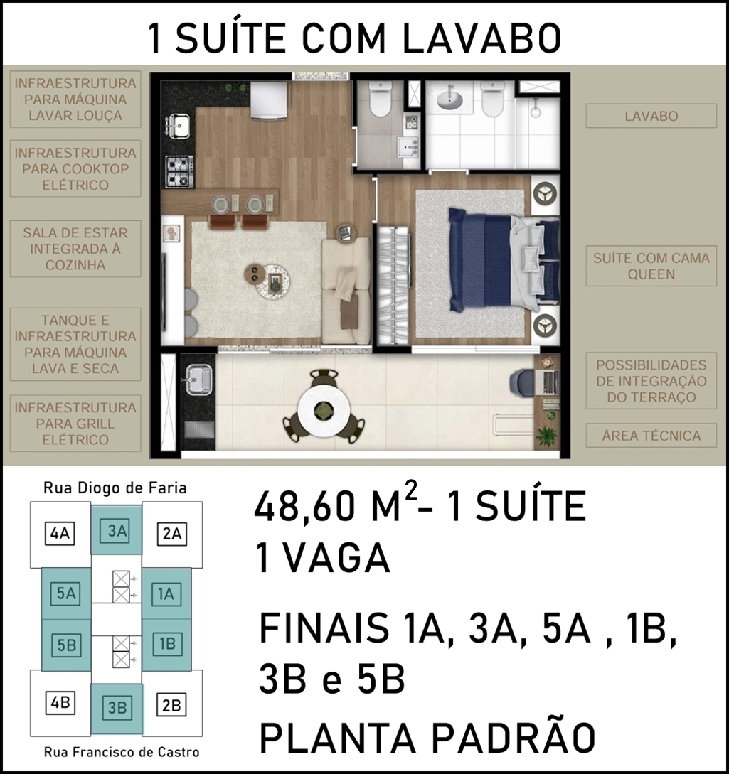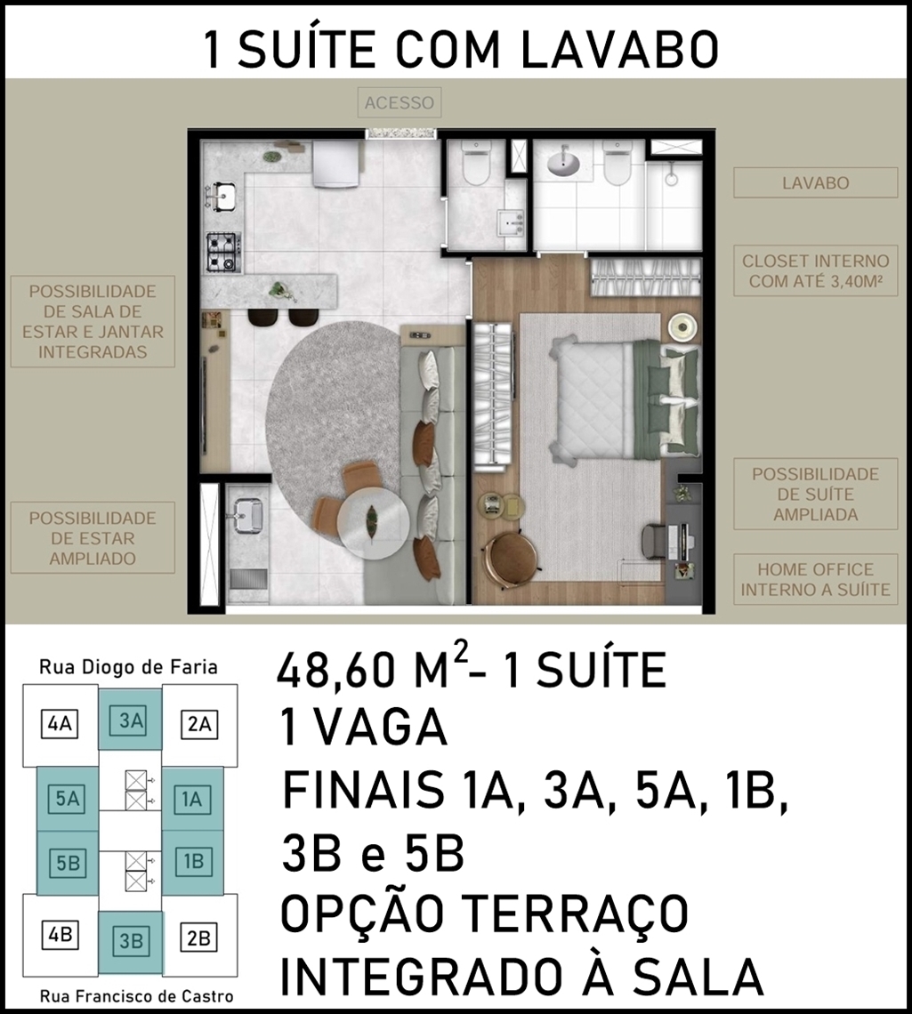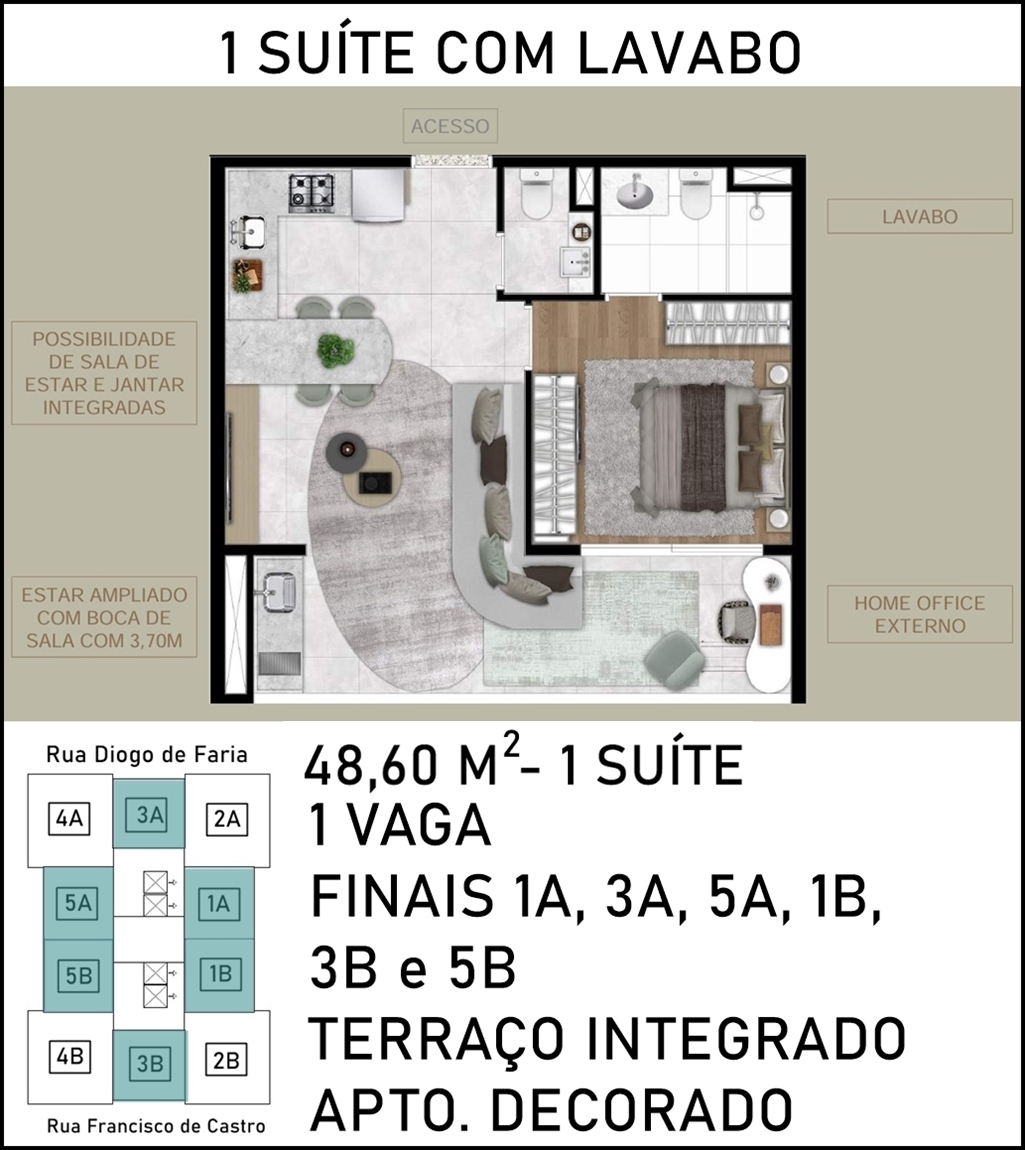 LIVING AMPLIADO DO APARTAMENTO DE 48