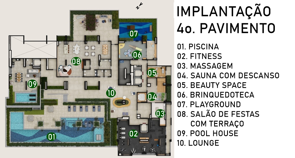 PISCINA COM RAIA DE 25 M COM DECK MOLHADO E SOLÁRIO