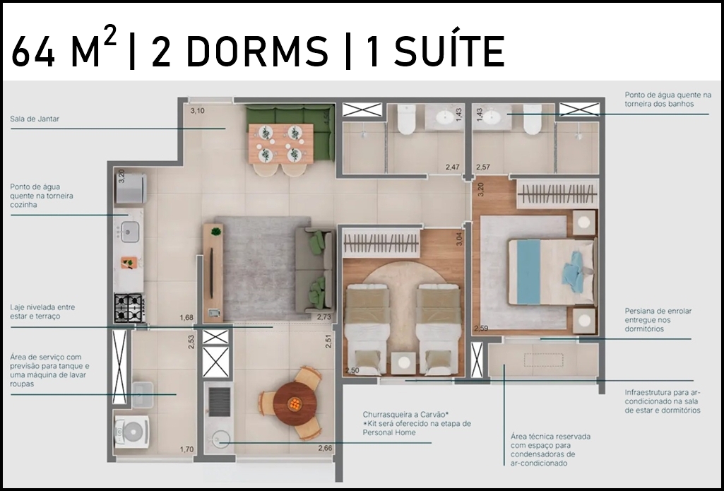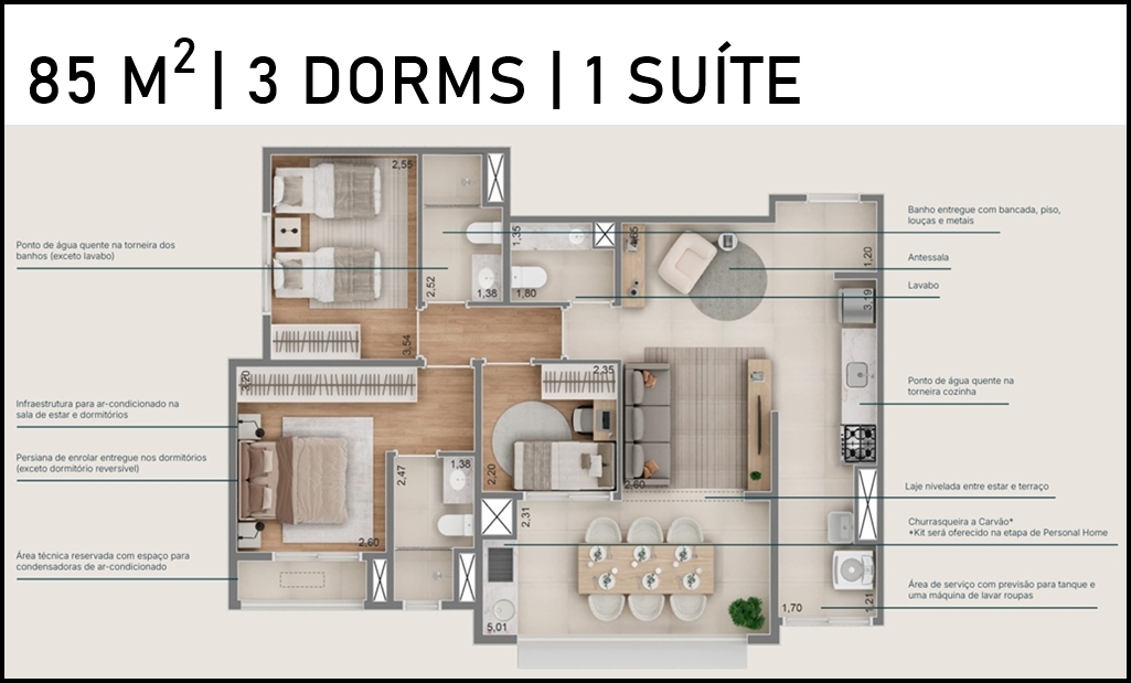 38, 64 e 85 m2 | 1 a 3 dorms