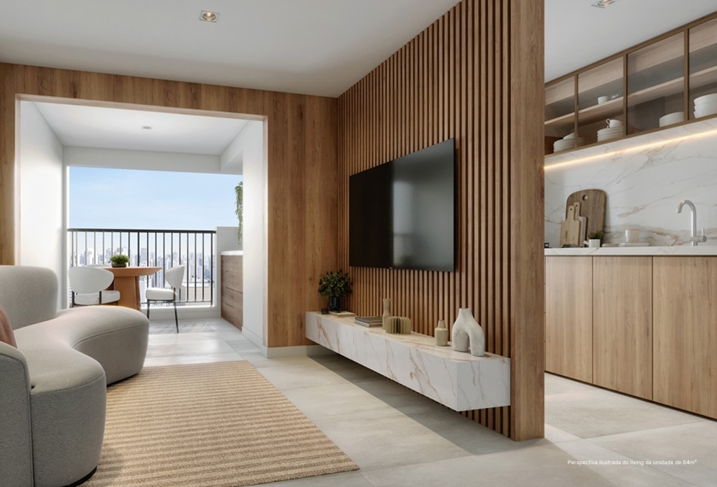 SUGESTÃO DE DECORAÇÃO PARA O LIVING DO APARTAMENTO DE 64 M2