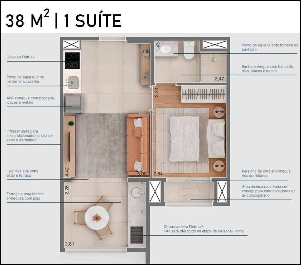 1 suíte | 1 vaga