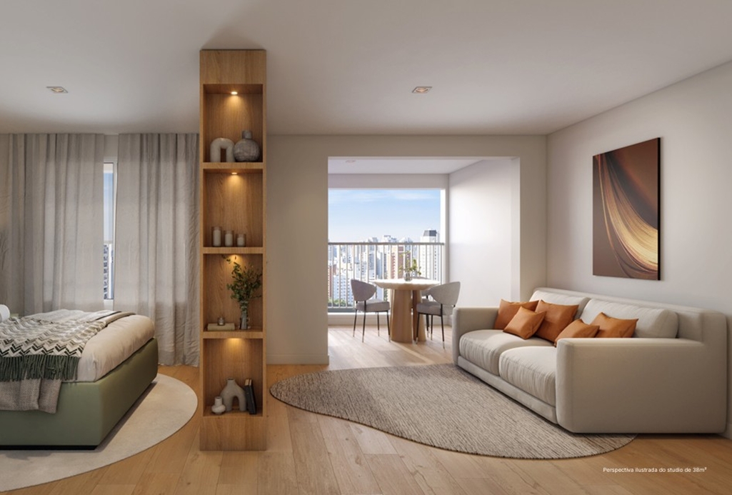 SUGESTÃO DE DECORAÇÃO PARA O LIVING DO APARTAMENTO DE 38 M2