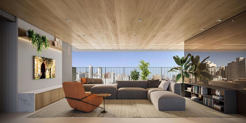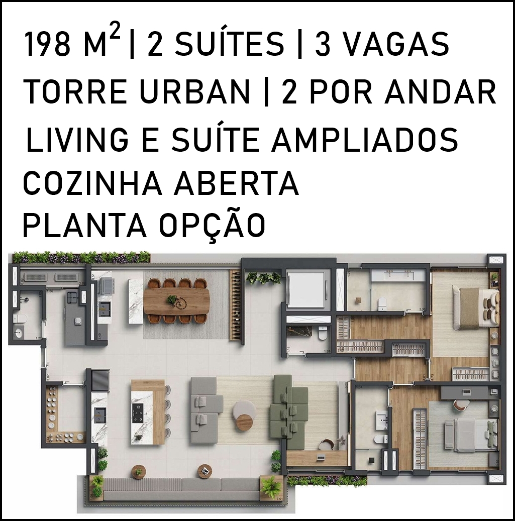 SUGESTÃO DE DECORAÇÃO PARA O LIVING AMPLIADO DO APARTAMENTO OPÇÃO DE 198 M2