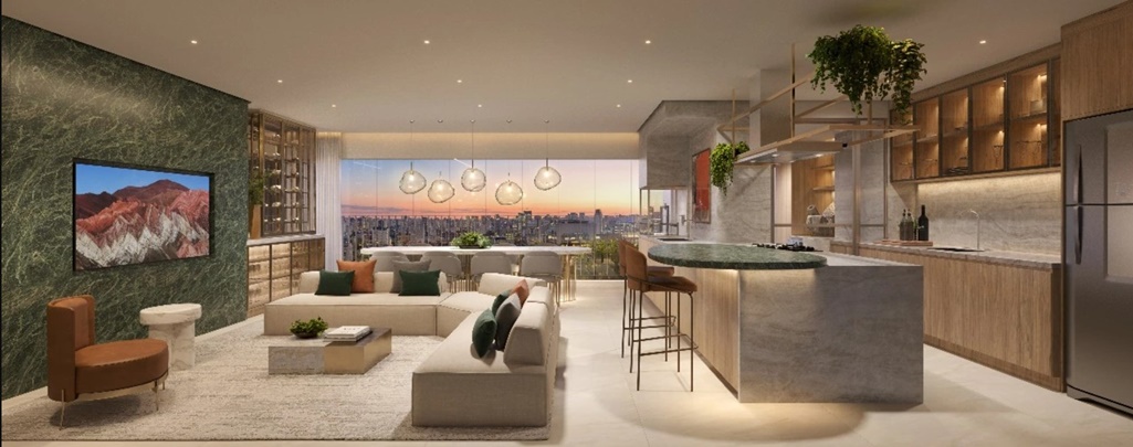 LIVING DO APARTAMENTO DE 107 M2 COM SUGESTÃO DE DECORAÇÃO