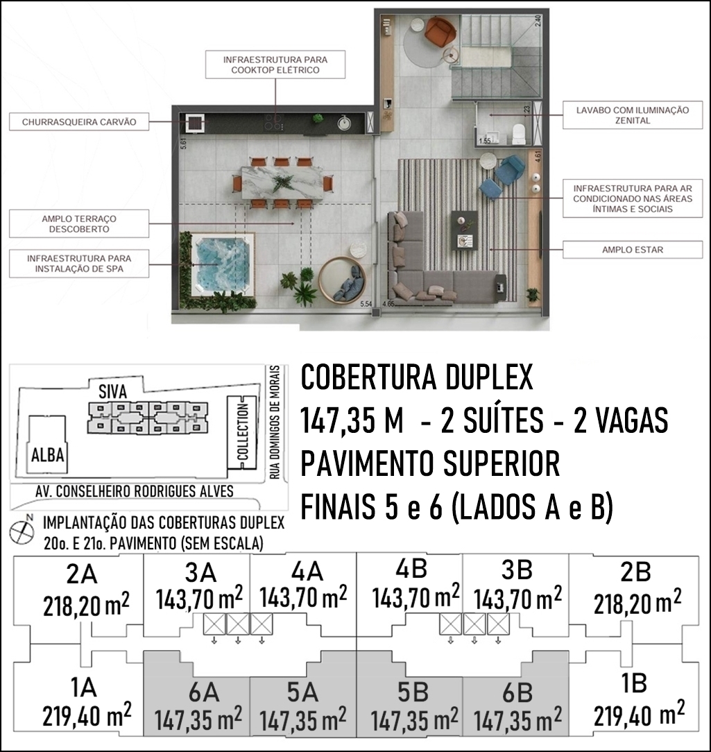 TERRAÇO DA COBERTURA DUPLEX DE 219 M2 COM SUGESTÃO DE DECORAÇÃO