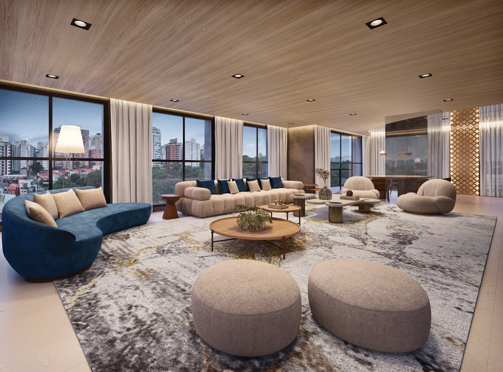 LIVING DO APARTAMENTO DE 253 M2 COM SUGESTÃO DE DECORAÇÃO
