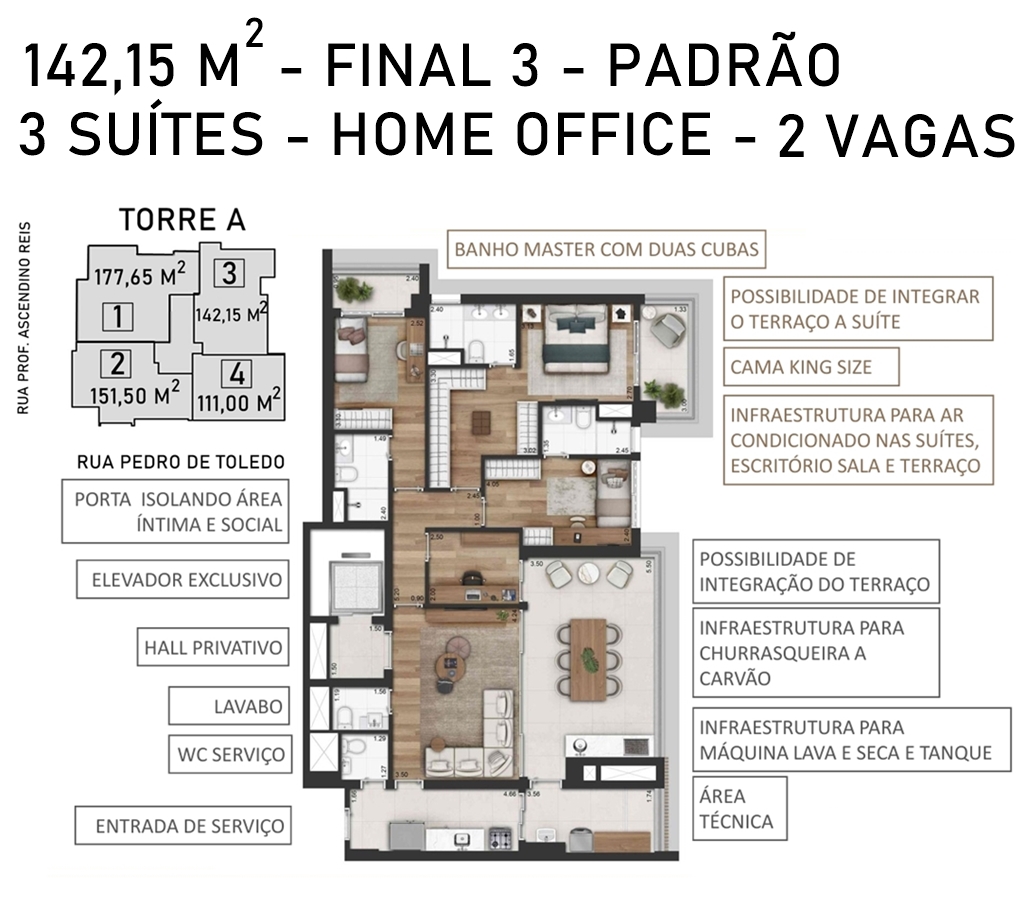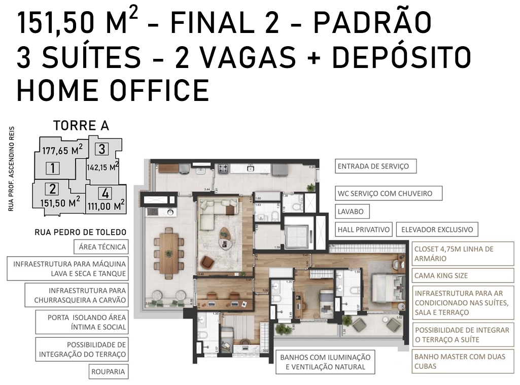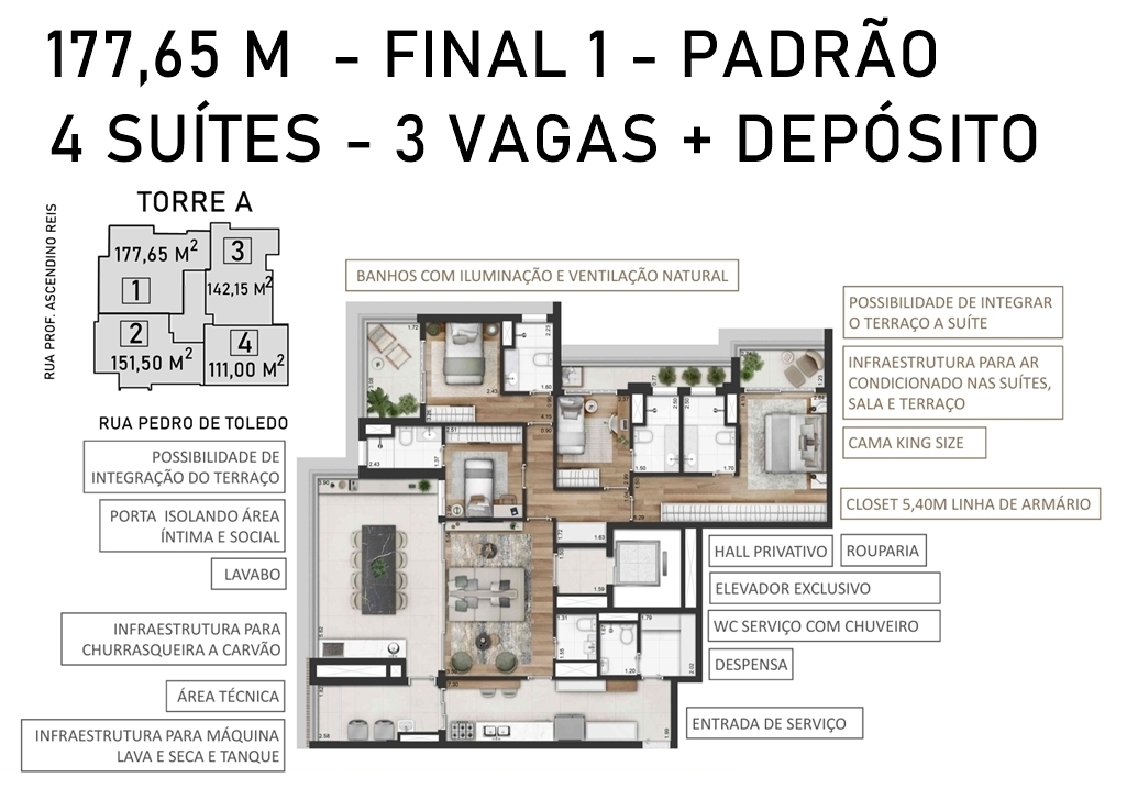 SUÍTE MÁSTER DO APARTAMENTO DE 177,65 M2 VERSÃO DECORADO