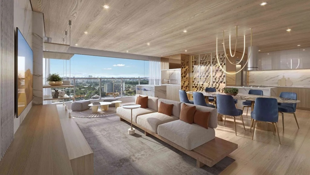 LIVING DO APARTAMENTO DE 151,50 M2 COM SUGESTÃO DE DECORAÇÃO