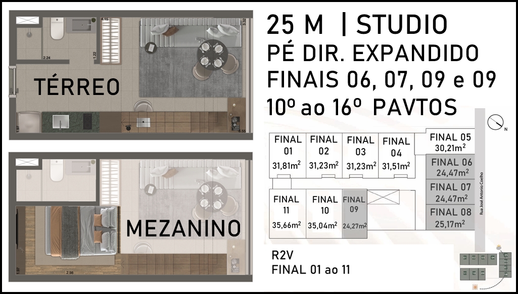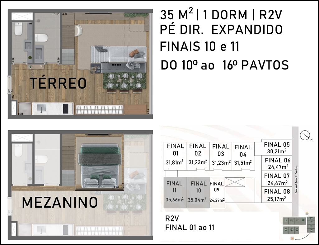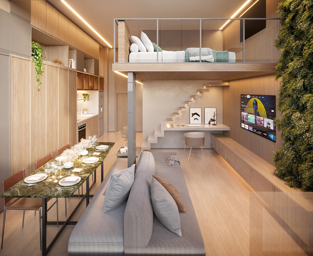 SUGESTÃO DE DECORAÇÃO PARA O APARTAMENTO DE 35 M2 COM PÉ DIREITO EXPANDIDO